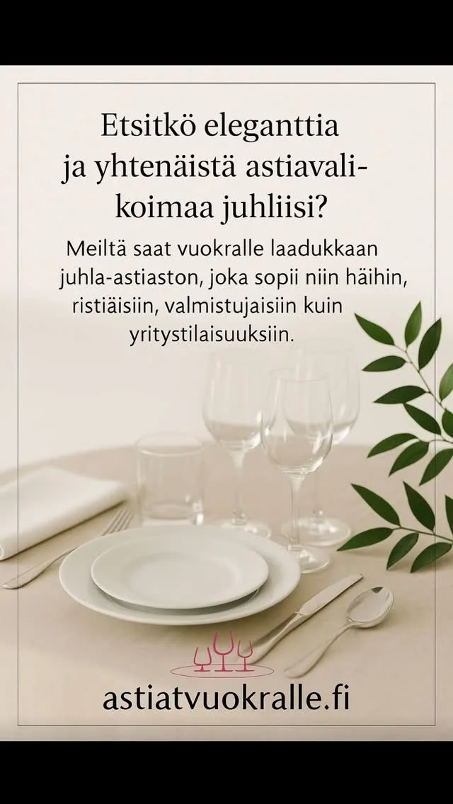 Astiatvuokralle.fi käyttää vain korkealaatuisia ja ajattomia astioita, jotka taipuvat pienten perhejuhlien tarpeista suuriin yritystilaisuuksiin. Astiamme on valikoitunut tyyli, käytännöllisyys ja kestävyys edellä.